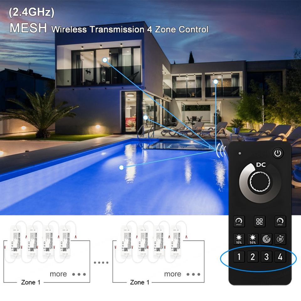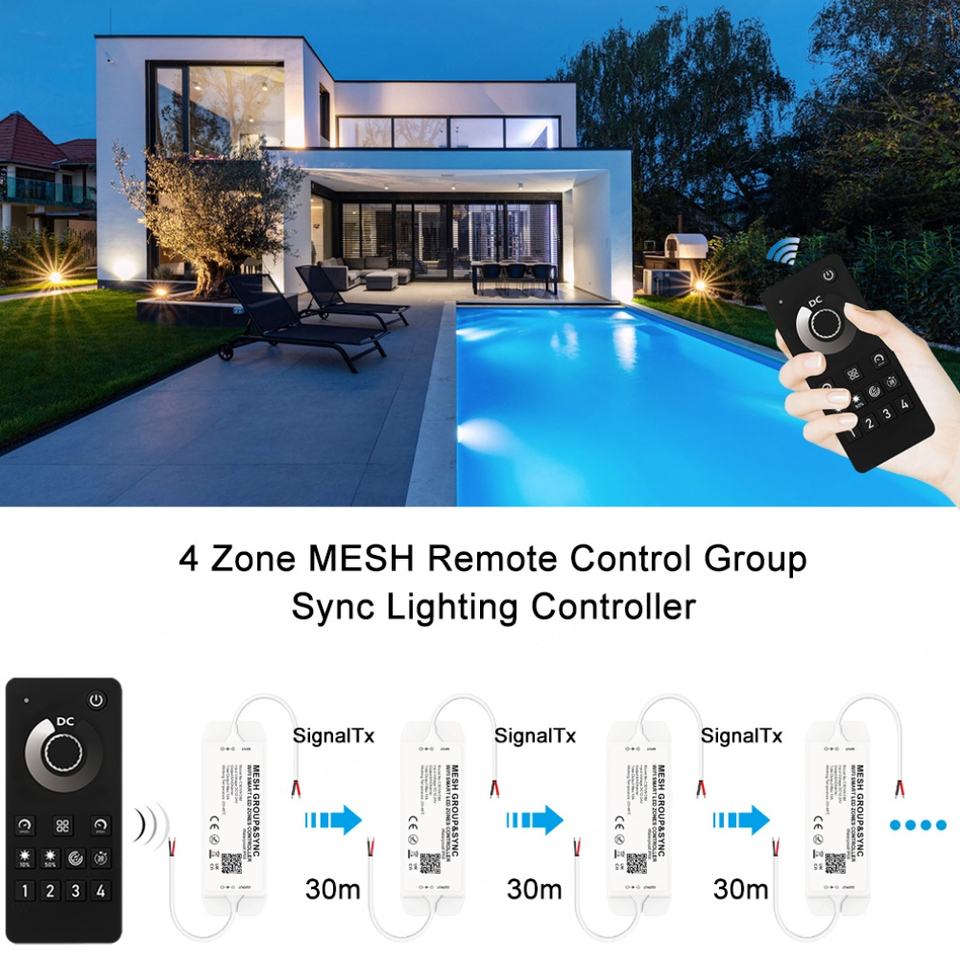 Application:4 Zone MESH Group&Sync Lighting Controller