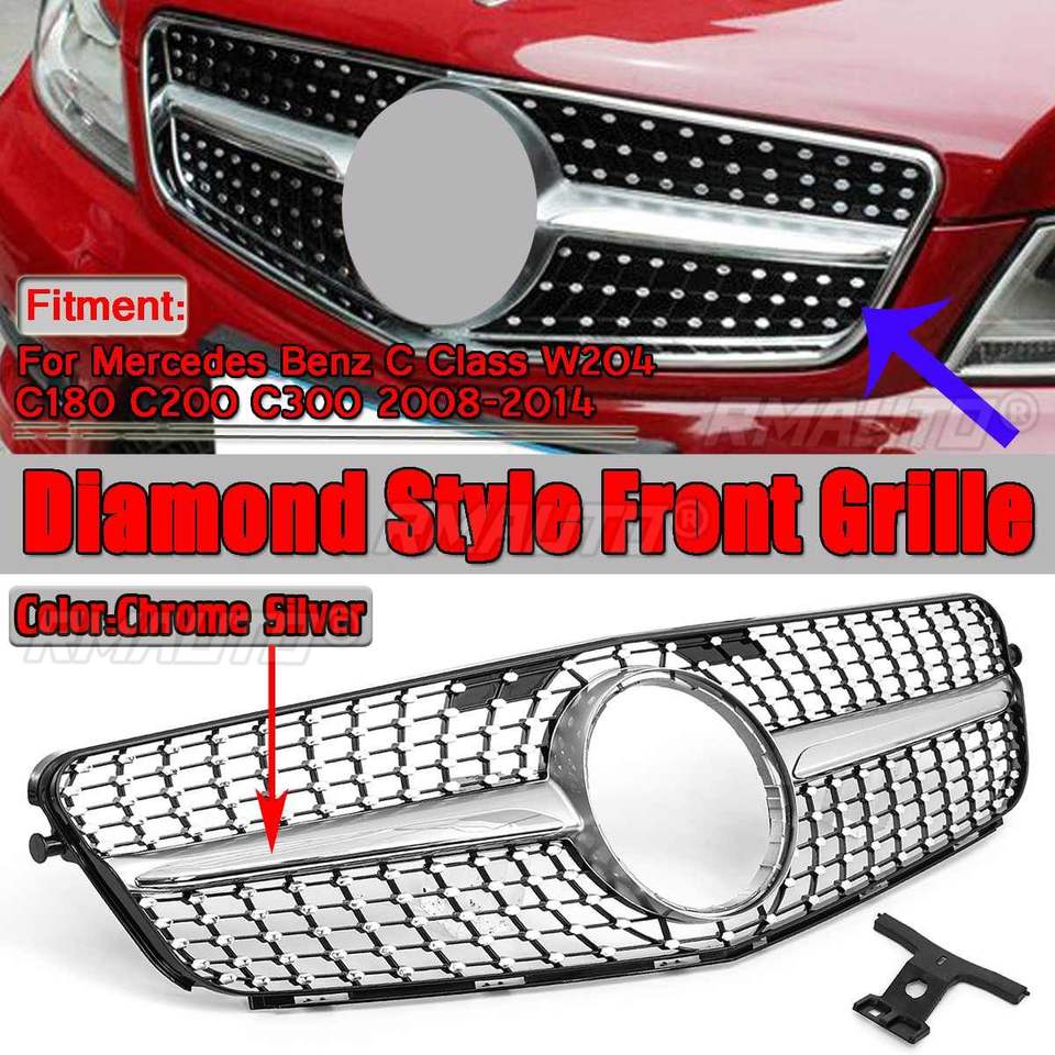 กระจังหน้ารถสไตล์เพชร C300 W204ตะแกรงย่างรถแข่งสำหรับรถเบนซ์ C-Class C200 W204 C180 C300 2008-2014