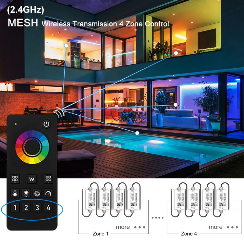 Application:4 Zone MESH Group&Sync Lighting Controller