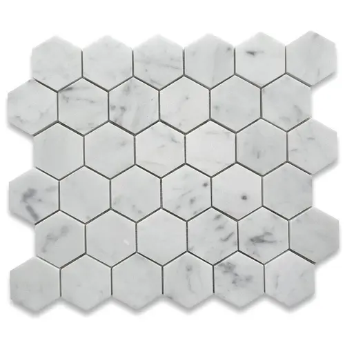 C32XP Carrara หินอ่อน2 \ "กระเบื้องโมเสคทรงหกเหลี่ยมขัดเงาขาว Carrera แคลไซต์ธรรมชาติสมัยใหม่สำหรับใช้ปูพื้นโรงแรม