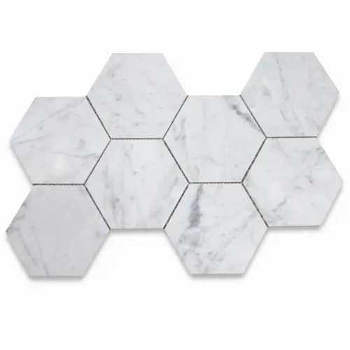 C35XP 5\" Hexagon Carrara White Venato Carrera Marble Mosaic Tile Modern Polished Calcite Slab for Floor Honed Natural Stone