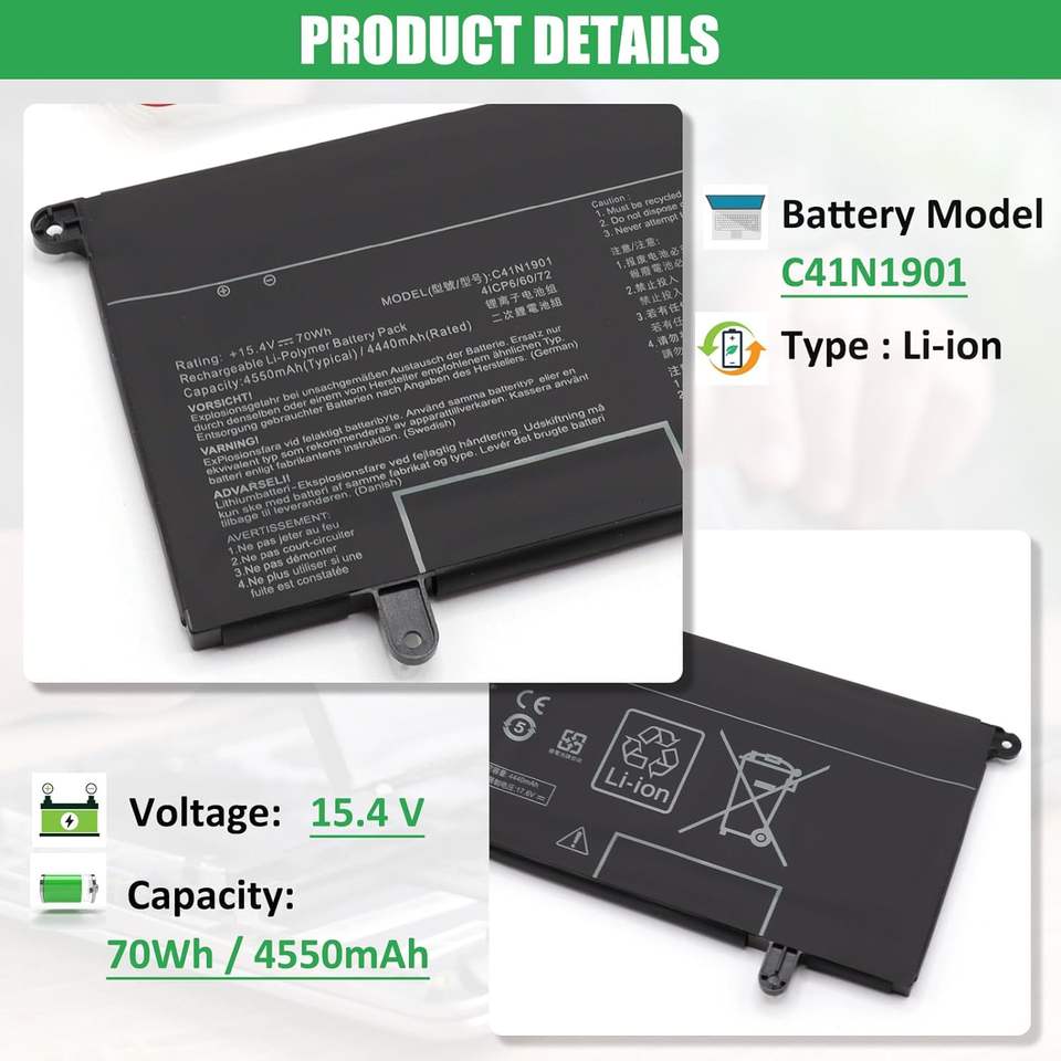 C41N1901 Laptop Battery Replacement for Asus ZenBook Duo UX481 UX481FA UX481FL UX481FLY UX481F X481FL Series Notebook 15.4V 70Wh