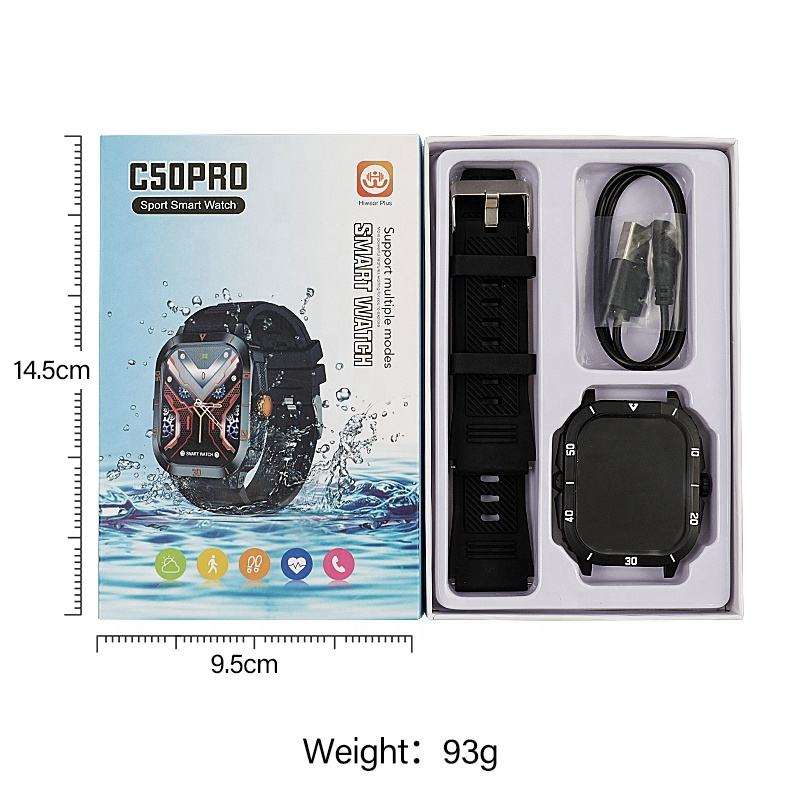 C50Pro สมาร์ทวอทช์สำหรับผู้ชายและผู้หญิง, นาฬิกาแบตเตอรี่ความจุสูงระบบสัมผัสบลูทูธติดตามอัตราการเต้นของหัวใจกันน้ำ