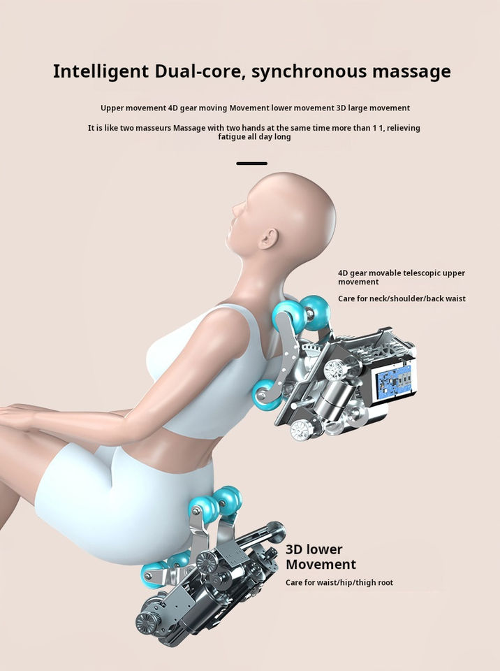 ระบบเบาะนั่งแบบไร้น้ำหนัก: ให้ตำแหน่งที่ไม่มีน้ำหนักและผ่อนคลาย ซึ่งช่วยลดความเครียดบนกระดูกสันหลังและเพิ่มความสบายโดยรวมระหว่างการนวด