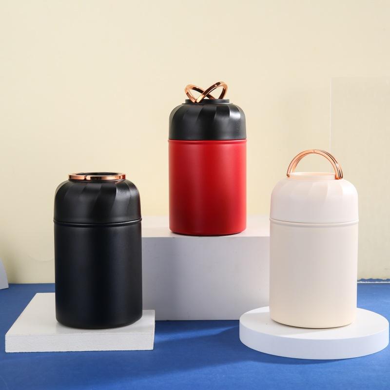กระติกน้ำสุญญากาศสแตนเลส C66 ทรงกระบอก 500 มล. กล่องอาหารกลางวันแบบเก็บความร้อนพร้อมฝาปิด สำหรับผู้ชาย ผู้หญิง สีขาว ดำ แดง
