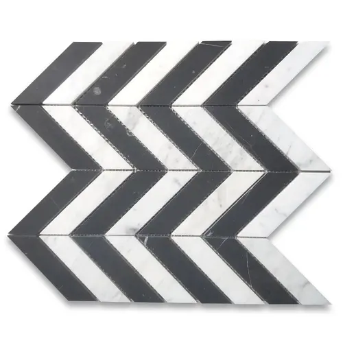 C7C1XH Carrara White and Nero Marquina Black Marble 1x4 Chevron Mosaic Honed Tile Product Category Mosaics