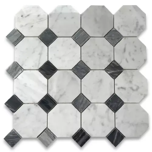 กระเบื้องโบราณลายแปดเหลี่ยมหินอ่อน C817XP Carrara 3 \ "ขัดสีขาวเทาพื้นผิวแคลเซียมธรรมชาติสำหรับพื้นห้องน้ำ