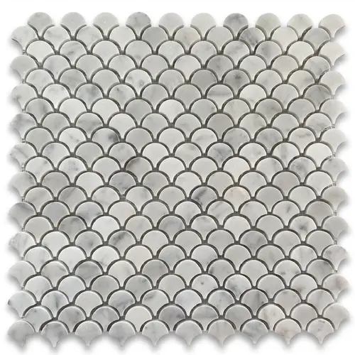 C991XH คารารากระเบื้องโมเสคหินอ่อนแบบพัดขนาดเล็กสีขาวผลิตภัณฑ์กระเบื้องโมเสค