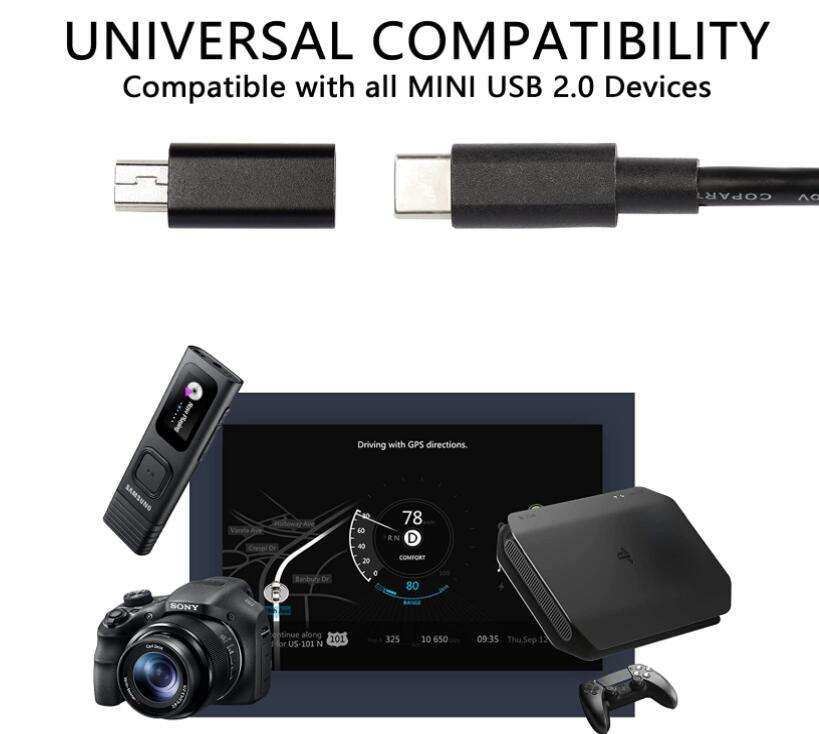 Cabletolink มินิ USB ตัวผู้ไปยัง USB C ตัวเมียคอนเนคเตอร์รองรับการชาร์จและซิงค์ข้อมูลสำหรับกล้องติดรถยนต์กล้องดิจิตอล