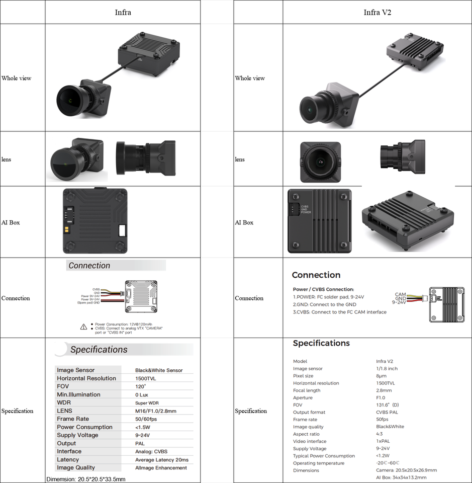 กล้อง CADDXFPV Infra V2 FPV 1500TVL เลนส์ 2.8 มม. 16:9/4:3 สลับได้ระหว่าง NTSC/PAL พร้อมเลนส์สำรอง กล้องไมโคร FPV สำหรับโดรน