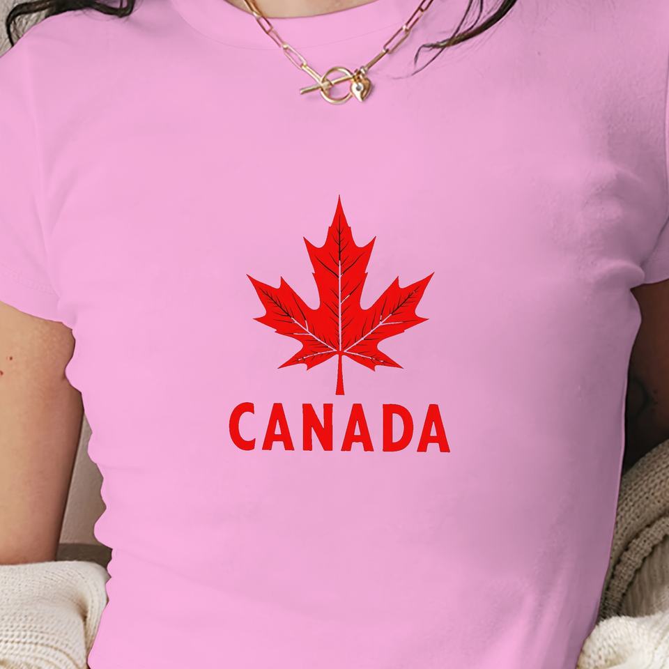 เสื้อยืดสั้นแฟชั่นแคนาดาสำหรับผู้หญิงเสื้อยืดสั้นพิมพ์ลายใบเมเปิ้ลสีแดงทรงสลิมฟิตผ้าถักสไตล์ Y2K