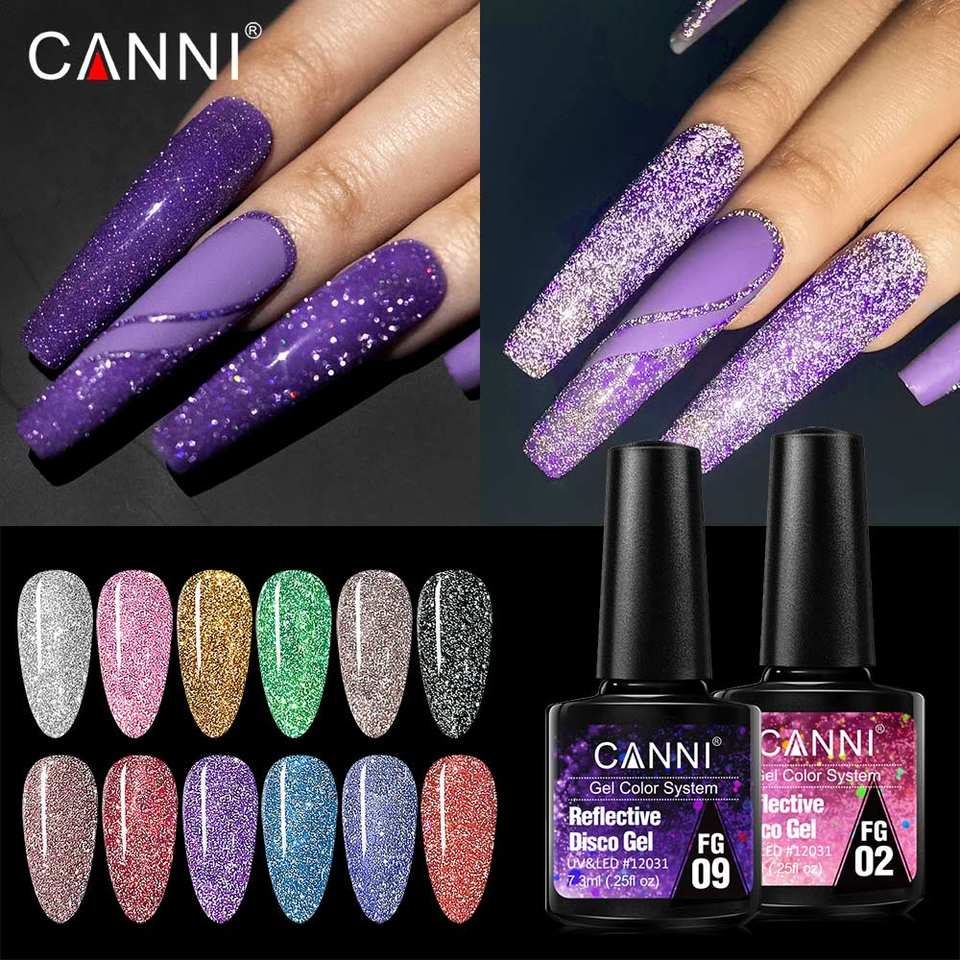 ยาทาเล็บเจล CANNI รุ่นใหม่ เรืองแสงในที่มืด กลิตเตอร์วิบวับ สะท้อนแสง เจลเพชรดิสโก้ กึ่งถาวร ยูวีเจล เคลือบเงา