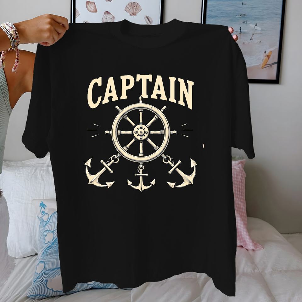 เสื้อยืดผู้หญิงผ้าฝ้ายแท้พร้อมเรือรูปวงล้อเอสใส่สบาย