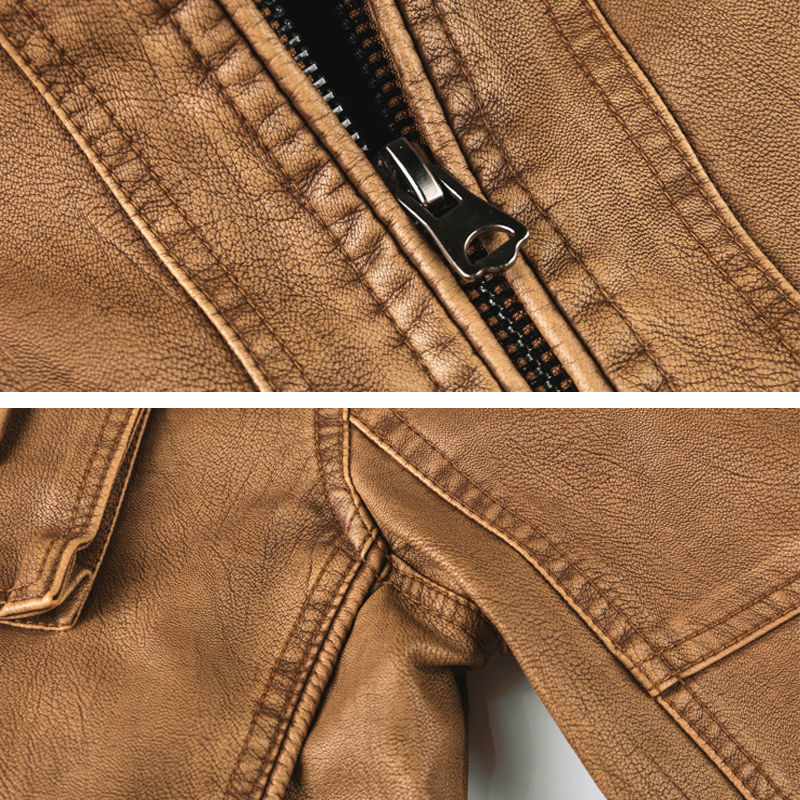 CARANFIER Men's Classic Stand Collar High Street Leather Jacket PU Faux Leather Windproof Breathable Free Logo Customization OEM