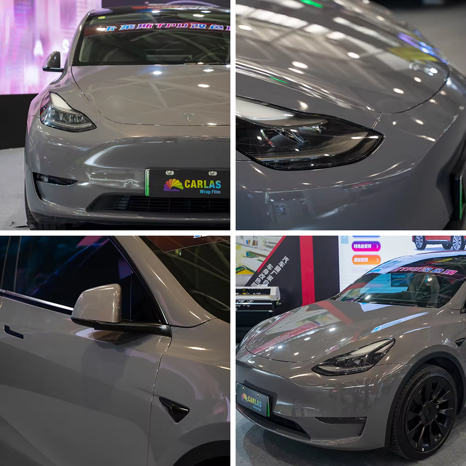 Carlas ฟิล์มสีเพ้นท์แห้งและเปียกรักษาตัวเอง PPF สีเงินจิ้งจอกสีเทาสีป้องกันรถยนต์ฟิล์มห่อสี