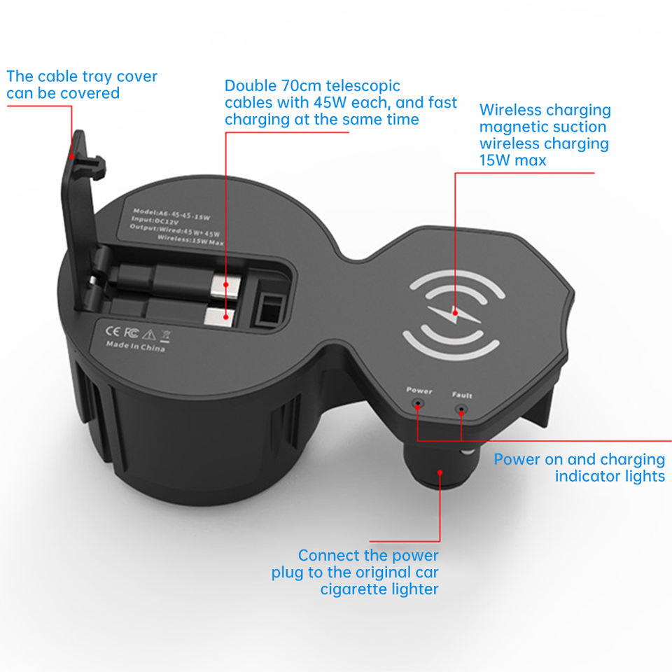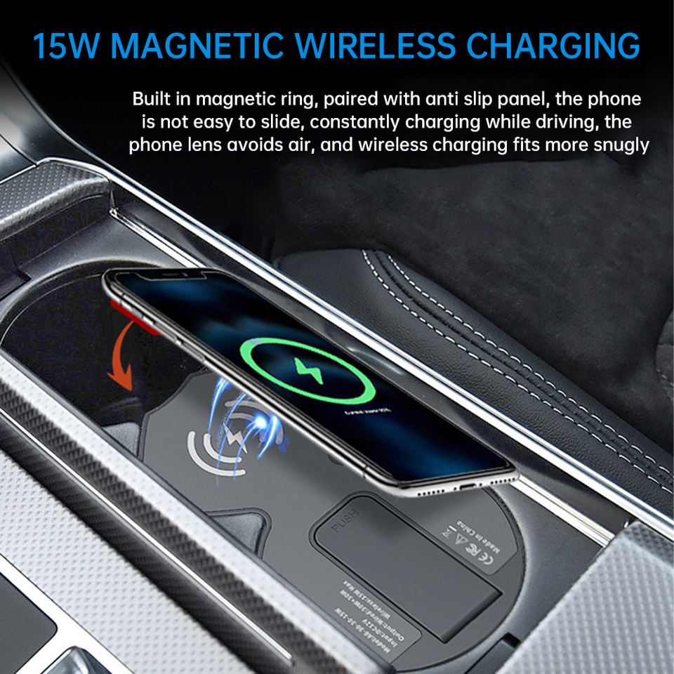 Carsoul A6L Audi/A7L 2019-2025ที่ชาร์จไร้สายแม่เหล็ก15วัตต์ชาร์จเร็วสูงสุด12-24โวลต์ดัดแปลงที่จุดบุหรี่ lossless