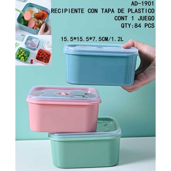 CASAMAX WL AD-1901 กล่องพลาสติกใส่อาหารพร้อมฝาปิด ความจุ 1.2 ลิตร ดีไซน์คลาสสิก สวยงาม ผลิตในจีน