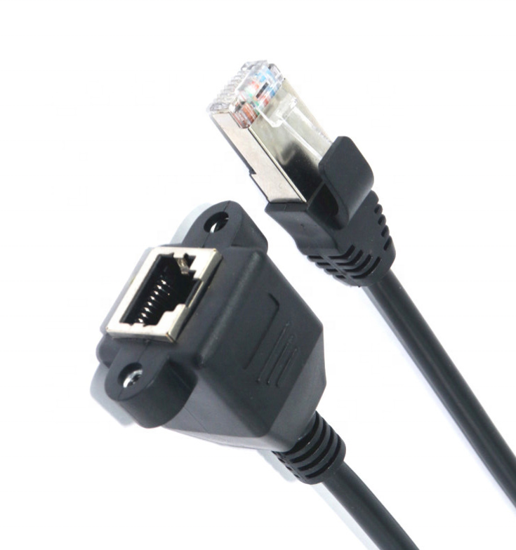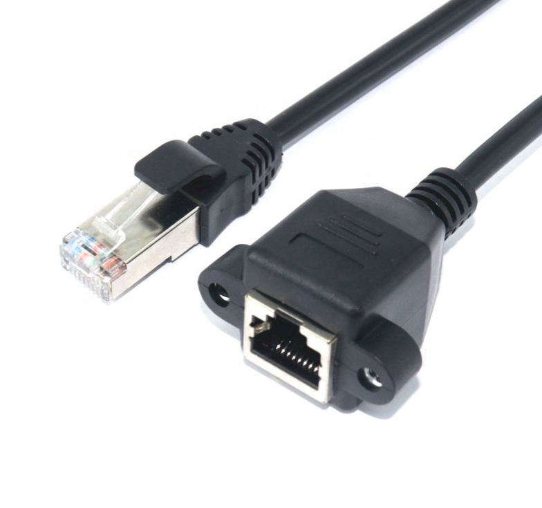 CAT.5E ชายกับหญิงซ็อกเก็ตสกรูแผงภูเขาสายเคเบิลต่อขยายเครือข่ายสาย Lan RJ45 FTP สายแพทช์อีเธอร์เน็ต