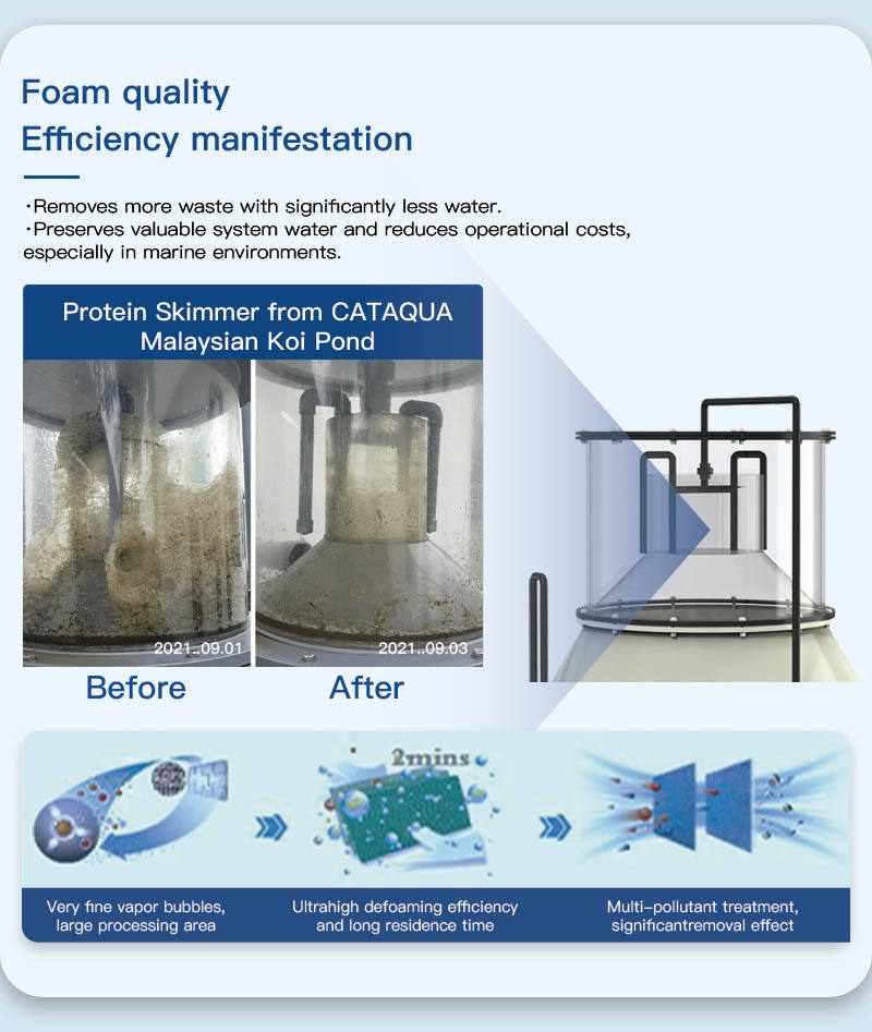 เครื่องกรองโปรตีนน้ำเค็มสำหรับฟาร์มปลา CATAQUA ผลิตจากพลาสติก PP ขนาดเส้นผ่านศูนย์กลาง 0.4*1.8 เมตร 10 ลูกบาศก์เมตร/ชั่วโมง ได้รับการรับรองมาตรฐาน ISO9001/CE