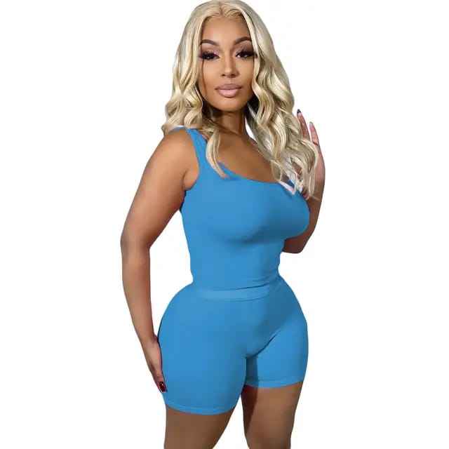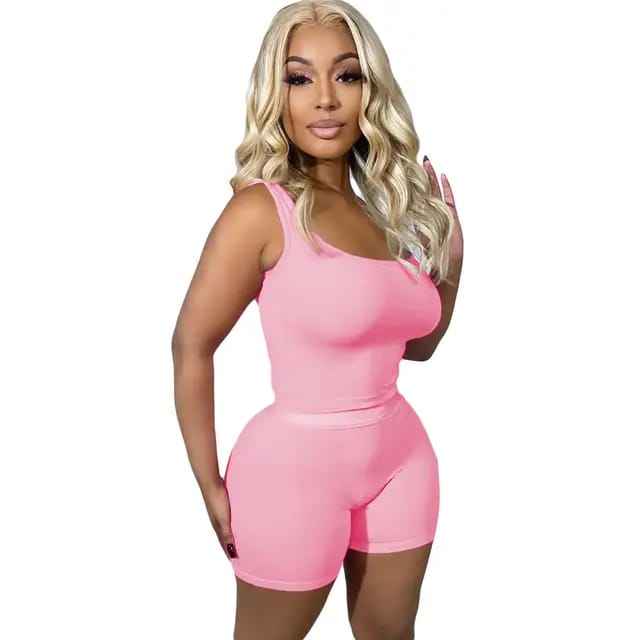 ชุดวอร์มกางเกงขาสั้นแบบถักสองชิ้นสำหรับผู้หญิงชุดวอร์มแบบลำลองสำหรับฤดูร้อน