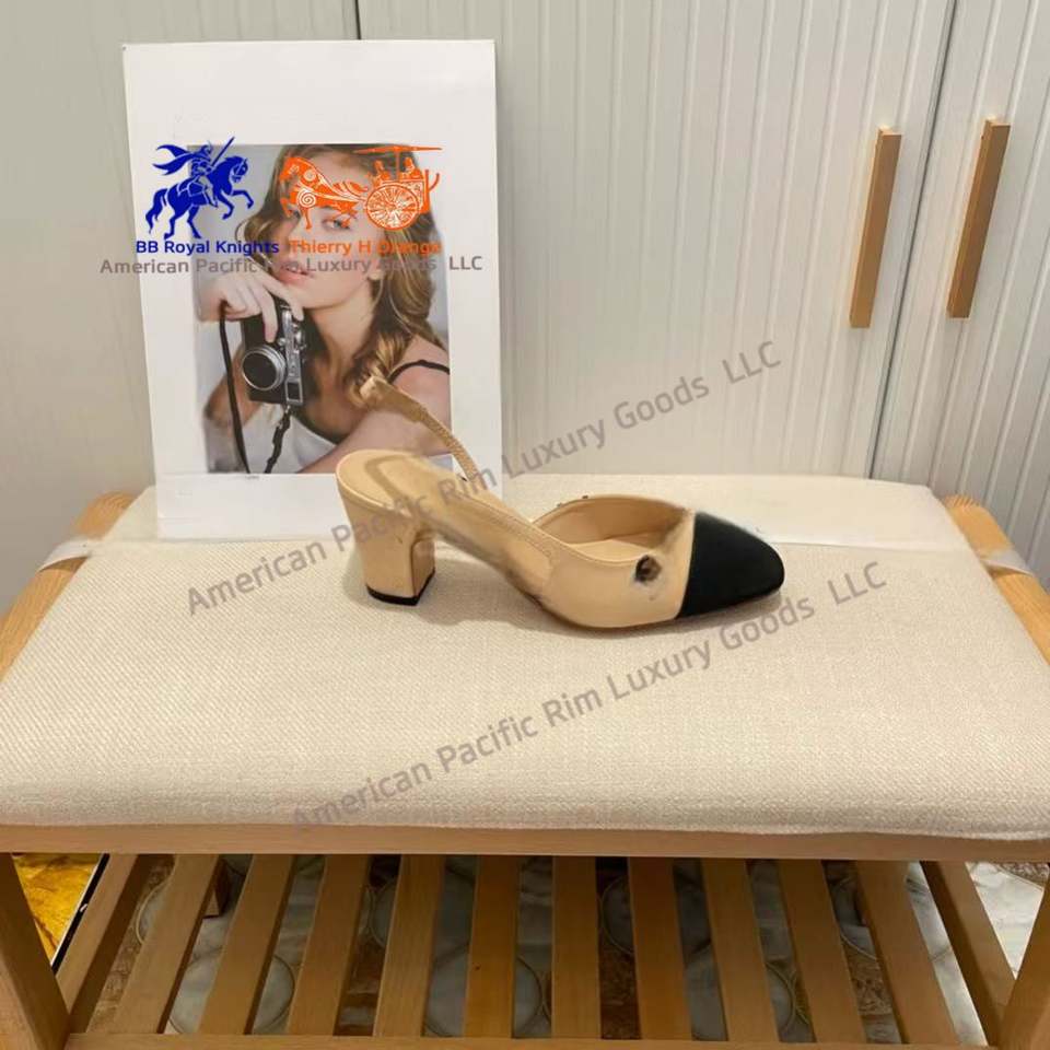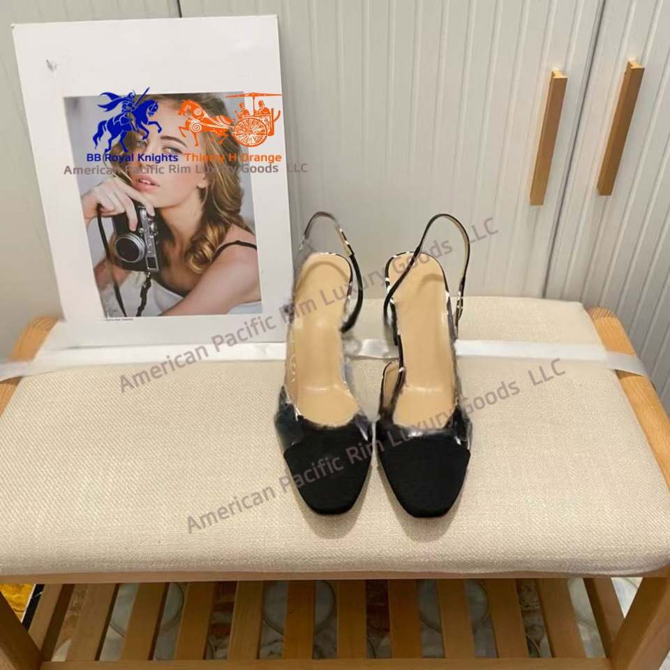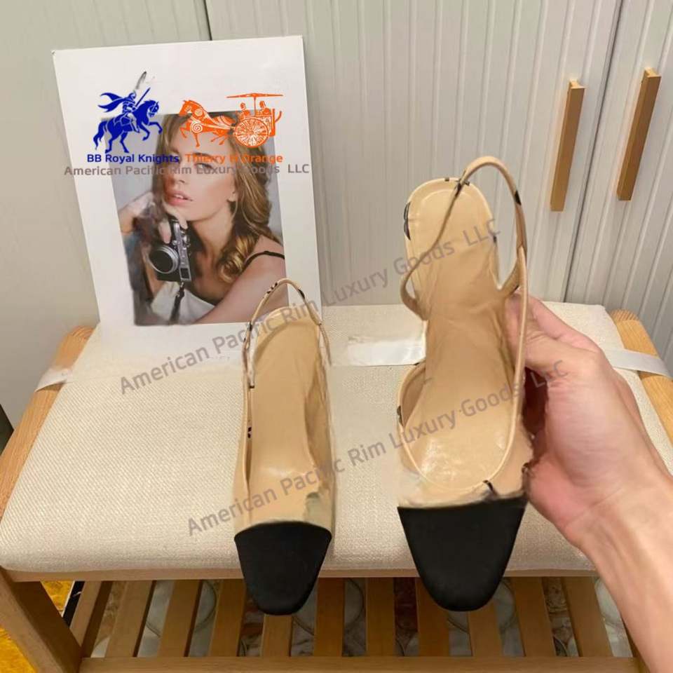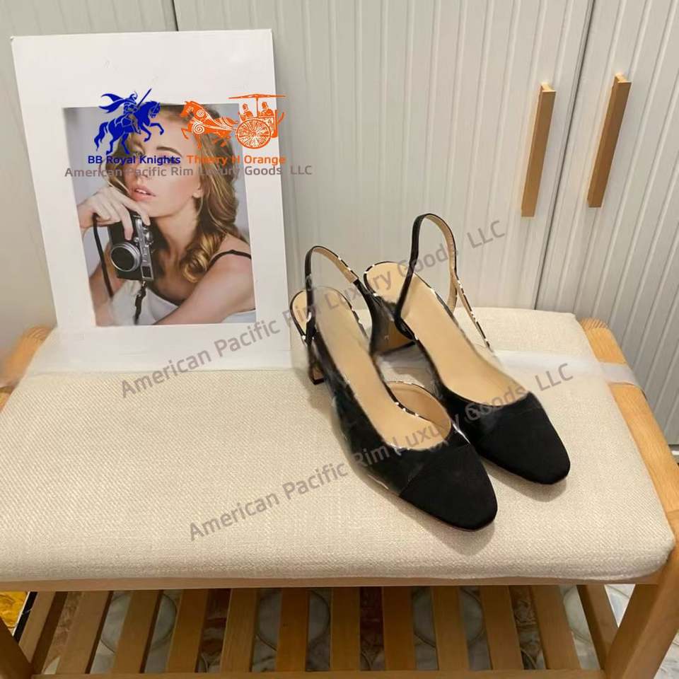 รองเท้าส้นเหลี่ยมแบบเปิดนิ้วเท้าสำหรับผู้หญิง ดีไซน์ CC คุณภาพสูง น้ำหนักเบา กันน้ำ สวมใส่ง่าย สไตล์เซ็กซี่สำหรับฤดูร้อน
