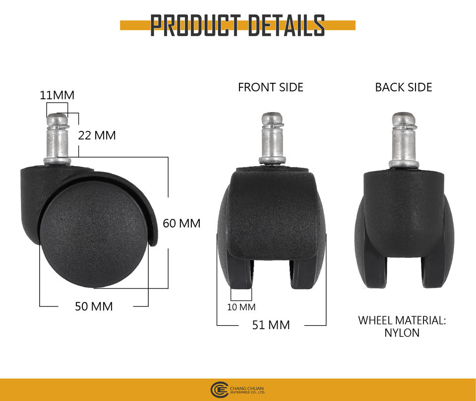 ล้อเก้าอี้พลาสติกสำหรับสำนักงาน CCE 2นิ้วแบบทันสมัยพร้อมห่วงก้านขนาด11X22มม. สำหรับโรงเรียนและเฟอร์นิเจอร์