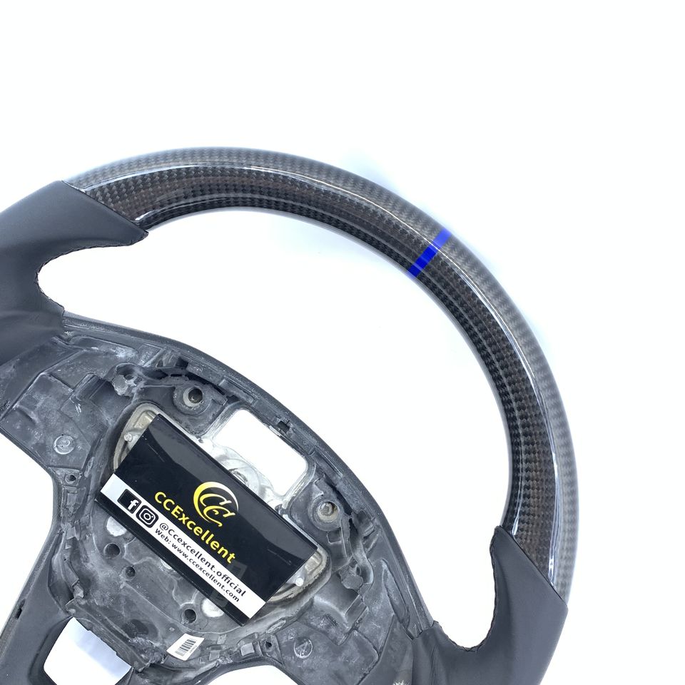 CCExcellent Customized Carbon Fiber Steering Wheel for Ford MK4 Design with Blue Stripe and Black Stitch