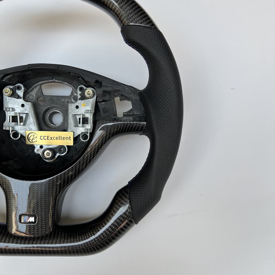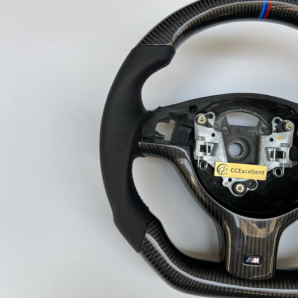 พวงมาลัยคาร์บอนไฟเบอร์คุณภาพเยี่ยมจากโรงงาน พร้อมขอบตกแต่ง สำหรับ BMW E46 M3 หุ้มหนังเจาะรู สีสั่งทำพิเศษ