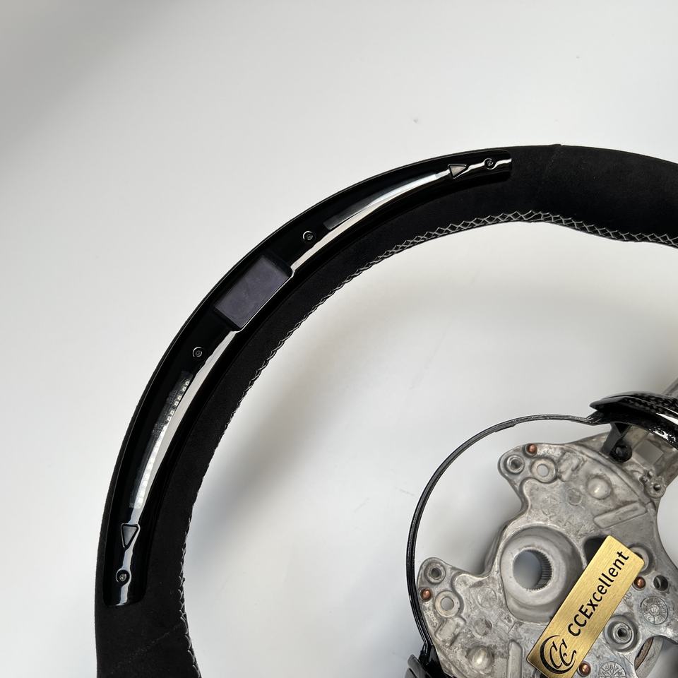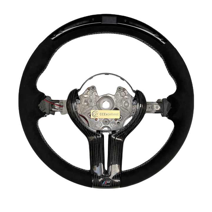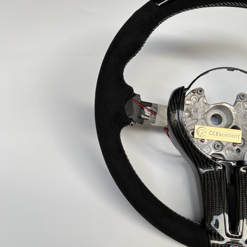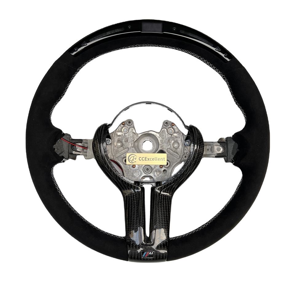 Ccexcellent พวงมาลัยพร้อมหนัง Alcantara และไฟ LED สำหรับ M2M3M4 BMW พร้อมแผ่นคาร์บอนไฟเบอร์ปรับแต่งรูปร่างและสีได้ตามต้องการ