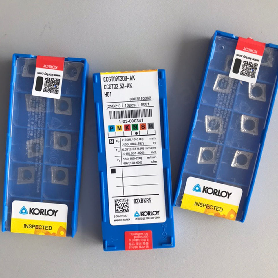 เม็ดมีดคาร์ไบด์เคลือบ PVD รุ่น CCGT09T308-AK H01 ยี่ห้อ Korloys สำหรับเครื่องกลึง CNC ขนาดใบมีด 16 มม. ความหนา 1.5 มม. รู 20 มม. รูปทรงข้าวหลามตัด