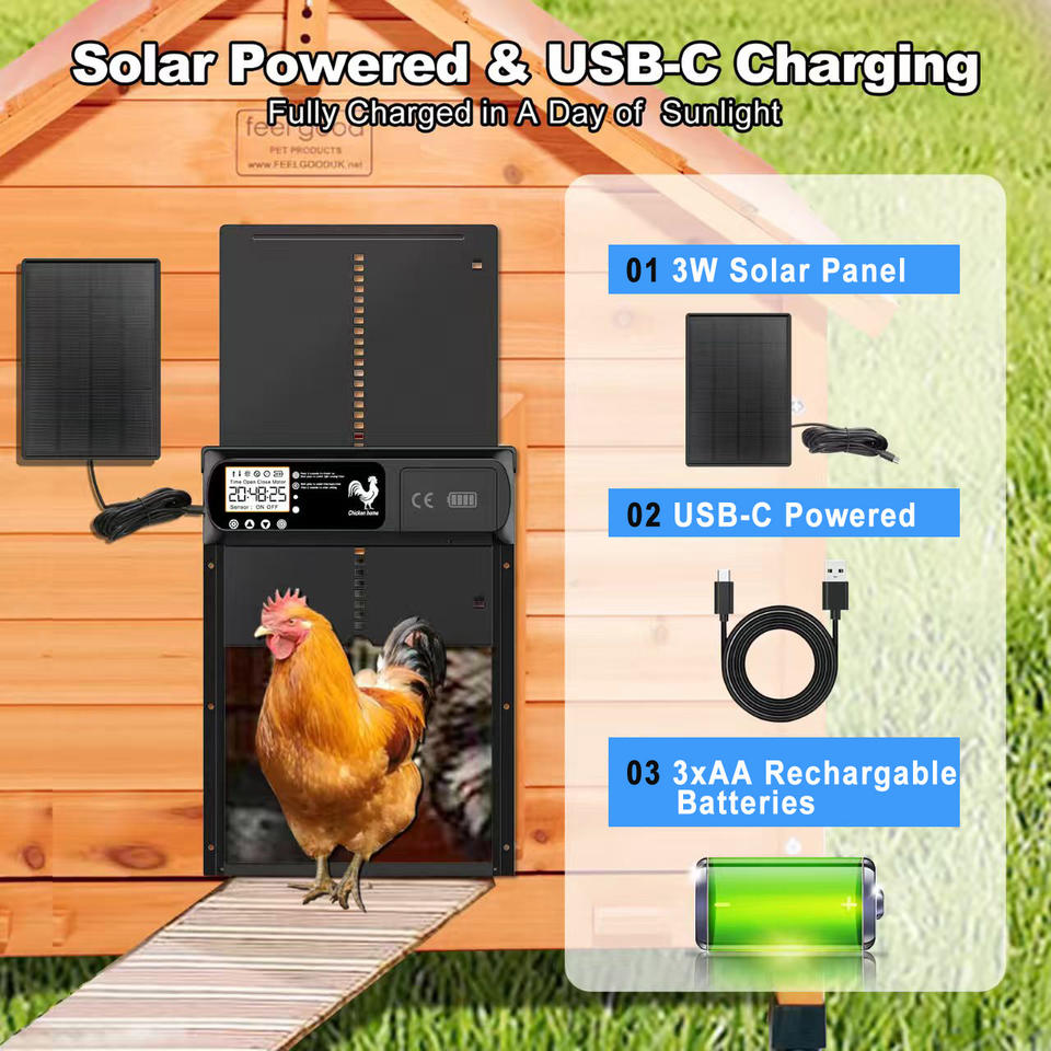 Power Source:3W Solar Panel, 3 x AA rechargeable batteries(not included)