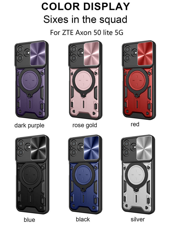 เคสโทรศัพท์ PC TPU ขาตั้งกระจกแบบเลื่อนได้สำหรับ ZTE AXON 50 Lite 4G