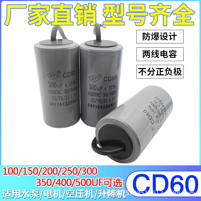 CD60เก็บประจุเริ่มต้นมอเตอร์450V, มีหลายขนาด100/200/250/300/400/500uF สำหรับสตาร์ทมอเตอร์