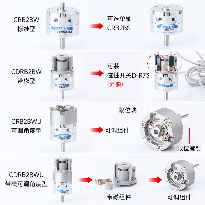 กระบอกสูบโรตารี่แบบใบพัด CDRB2BW รุ่น CRB2BW15-20-30-40-90 องศา 180 องศา แบบสองทาง