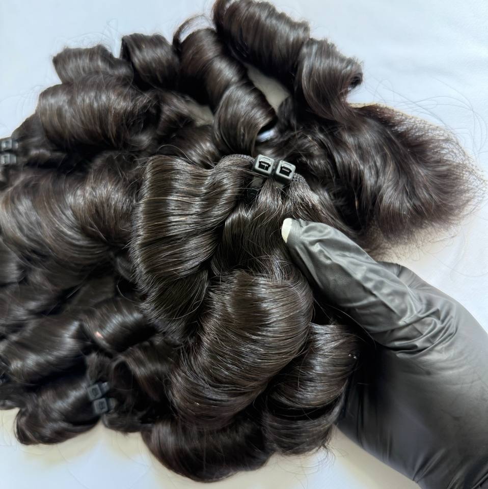 ผมเวียดนามแท้แบบไม่ผ่านการแปรรูป ยี่ห้อ CDYHAIRVN แบบลอนเด้ง ทอแบบด้วยเครื่องจักร ด้ายคู่ ออกแบบได้ตามต้องการ สำหรับผู้หญิงผิวสี สามารถฟอกสีได้ สีดำ สีเบลช 27 613