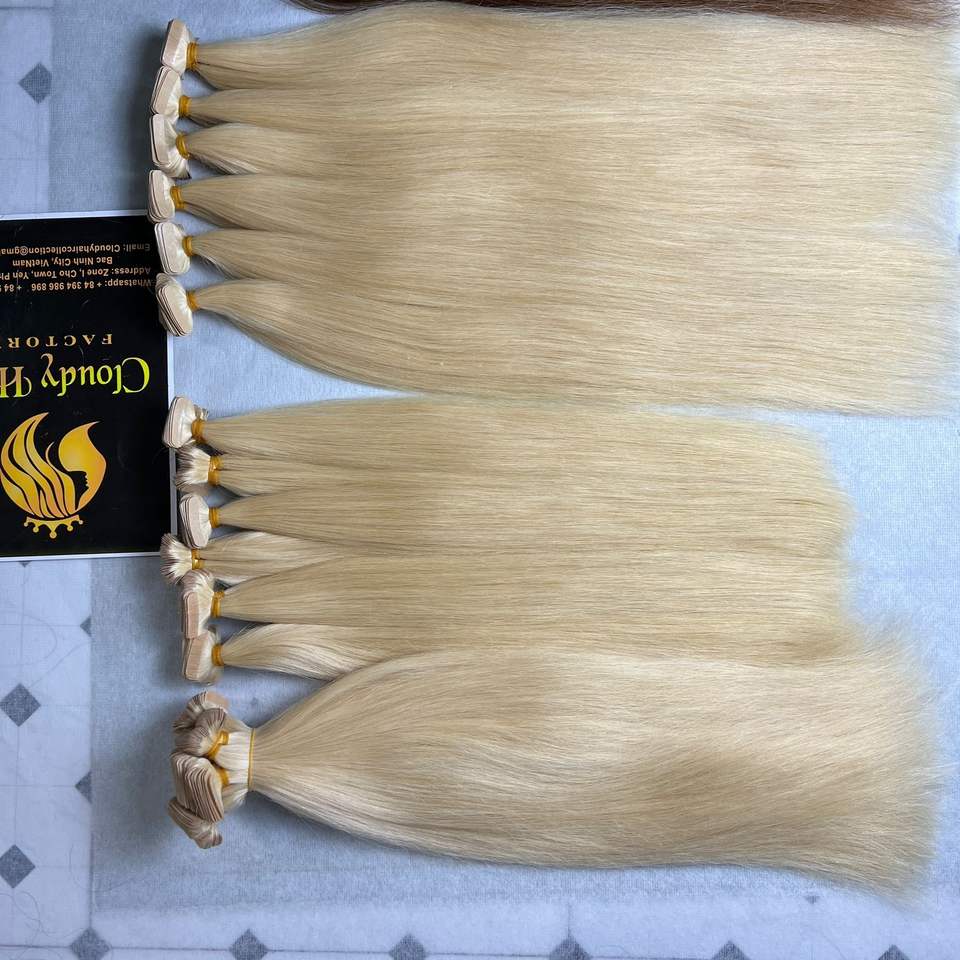 ผมต่อแบบเทปตรงธรรมชาติ CDYHAIRVN สีบลอนด์ 613 60 แบบไฮไลท์ออมเบร มองไม่เห็นรอยต่อ ผมแท้เวียดนาม ย้อมสี 12A
