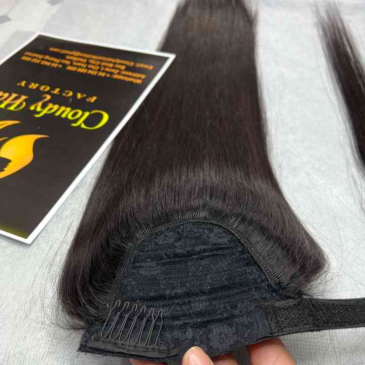 CDYHAIRVN หางม้าแบบพันรอบผมตรงสลวย เส้นผมต่อแบบหางม้า ผมแท้ 100%