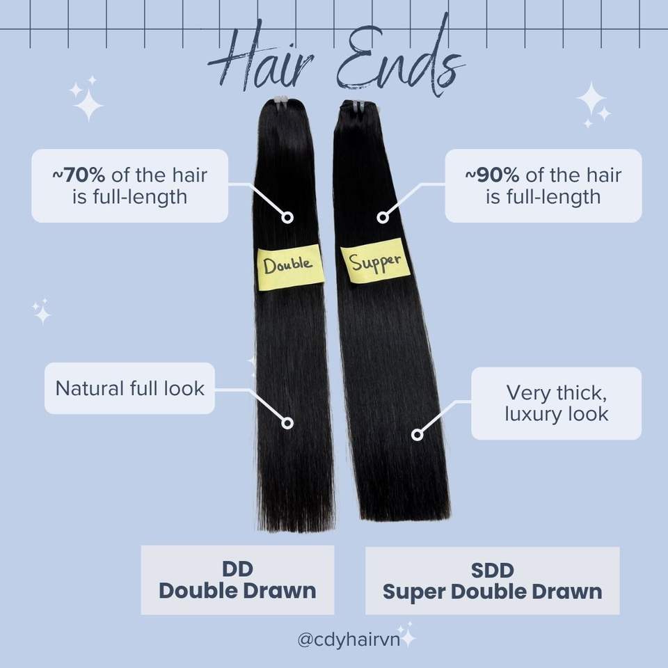 ผมเวียดนาม CDYHAIRVN หนาเป็นธรรมชาติ ตรง ไม่ผ่านการแปรรูป แบบเป็นมัด 8-40 นิ้ว แบบฟูลซุปเปอร์ดับเบิ้ลดรอน ซิงเกิลดอนเนอร์ ไม่ใช่เรมี่ พร้อมสำหรับการดัดและย้อมสี