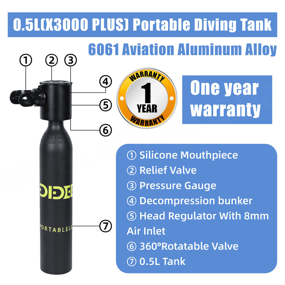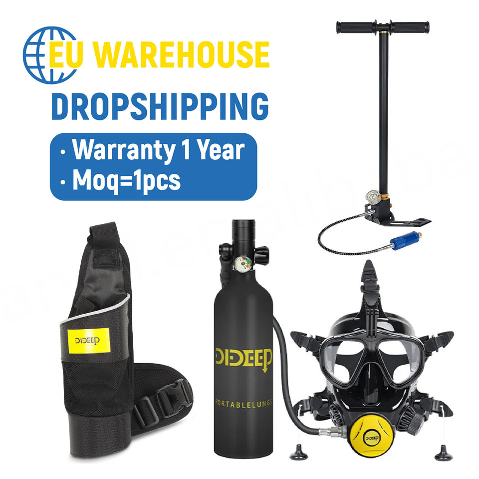 ถังออกซิเจนดำน้ำขนาดเล็ก 1 ลิตร ผลิตจากอะลูมิเนียมอัลลอยด์ ได้รับการรับรองมาตรฐาน CE พร้อมปั๊ม แบบพกพา คลังสินค้าในยุโรป รองรับการดรอปชิป