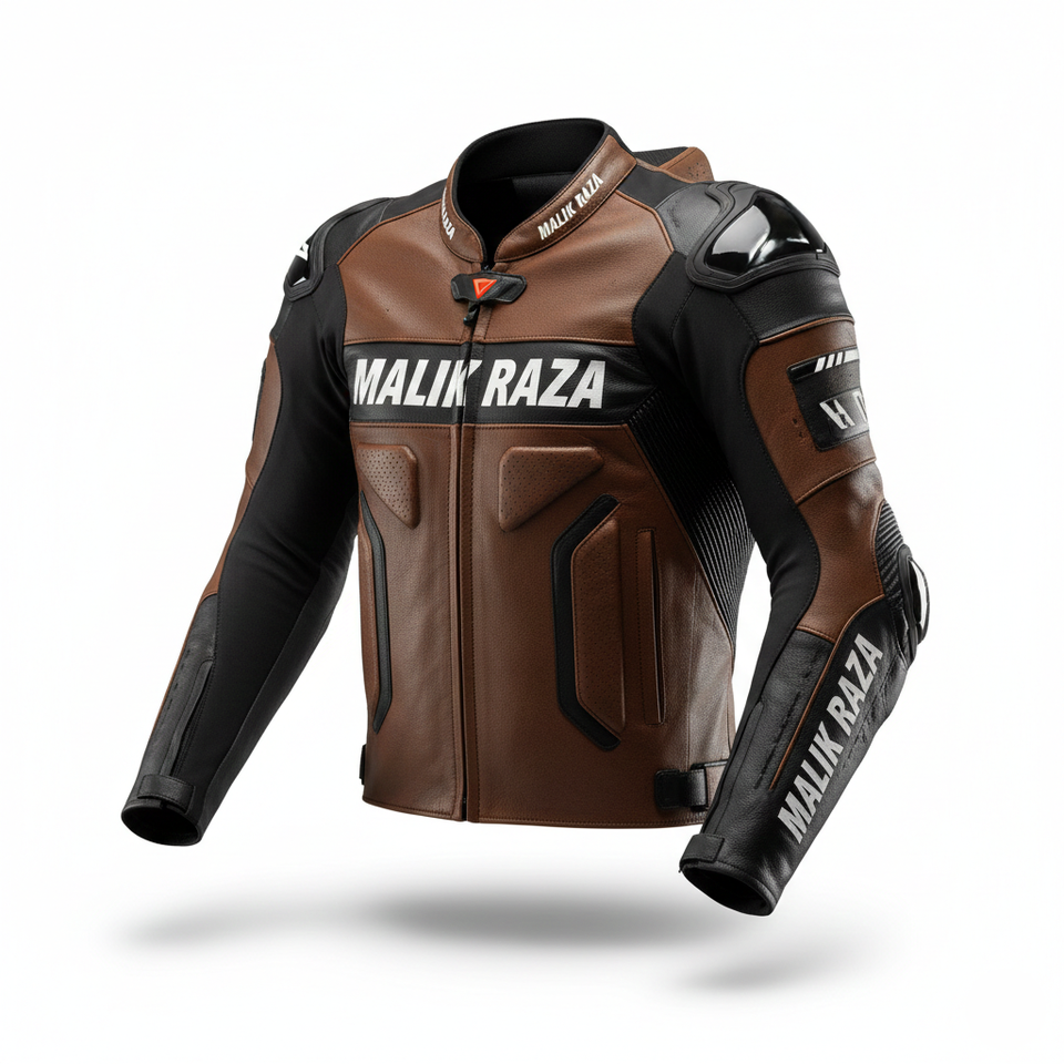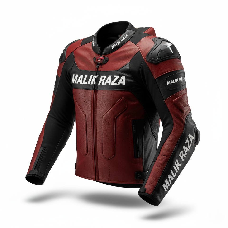 เสื้อแจ็คเก็ตมอเตอร์ไซค์หนังหุ้มเกราะ ได้รับการรับรองมาตรฐาน CE โดย MALIK RAZA | หนังวัวหนา 1.2 มม. ป้องกันการเสียดสี | อุปกรณ์ป้องกันเพื่อความปลอดภัยระดับมืออาชีพ