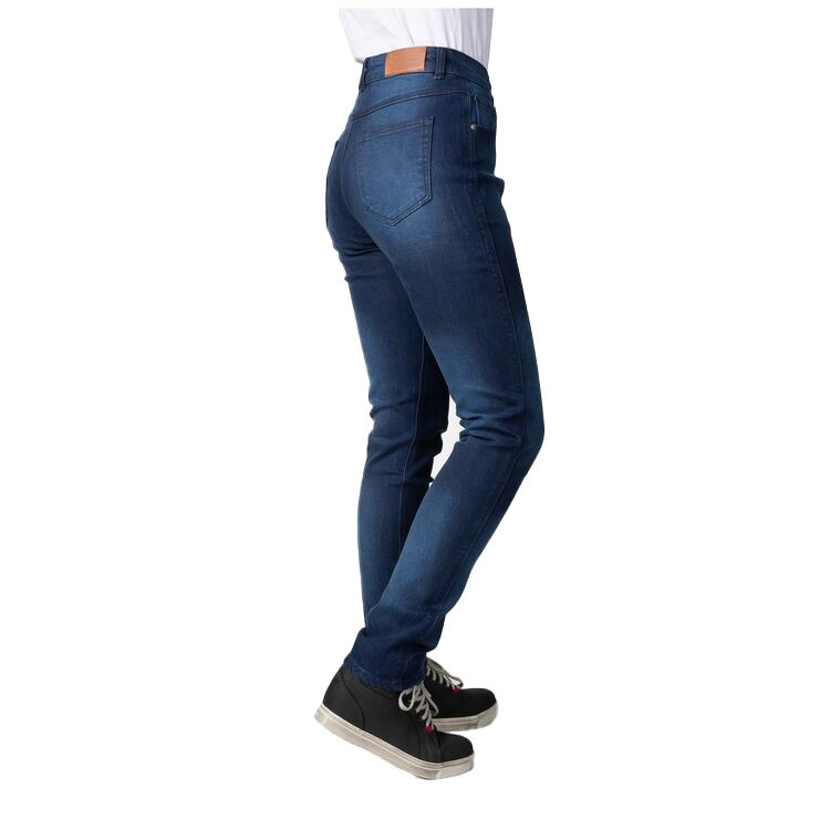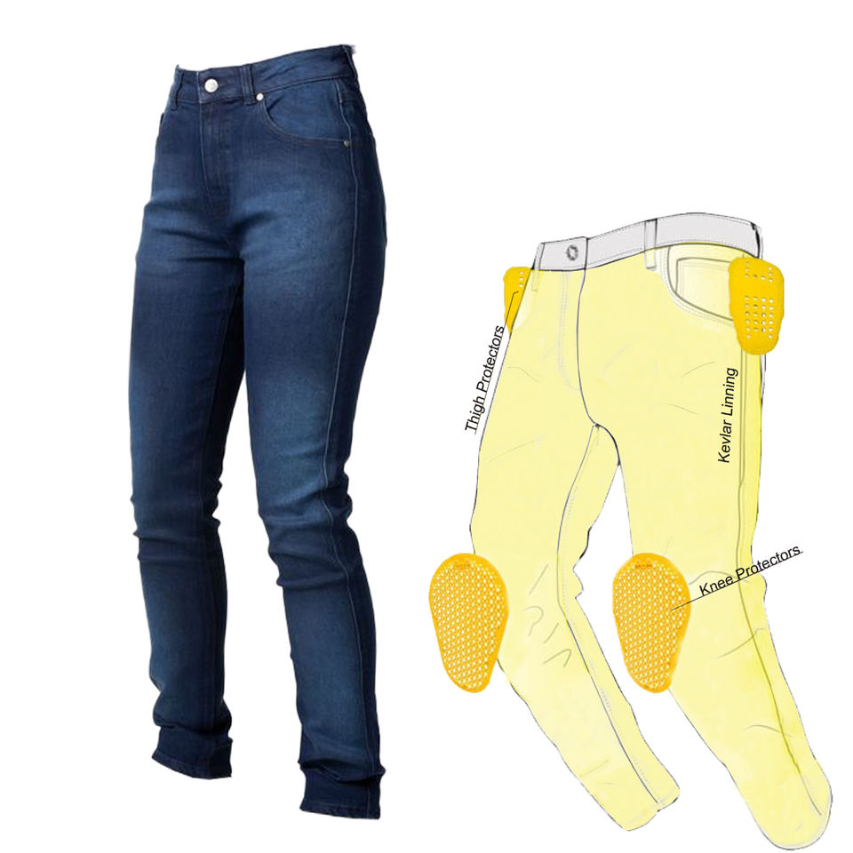 กางเกงยีนส์มอเตอร์ไซด์ของผู้หญิงที่ผ่านการรับรอง CE AA กางเกงดินสอผ้ายีนส์ผ้ายืดพร้อมหมุดตกแต่งและล้าง