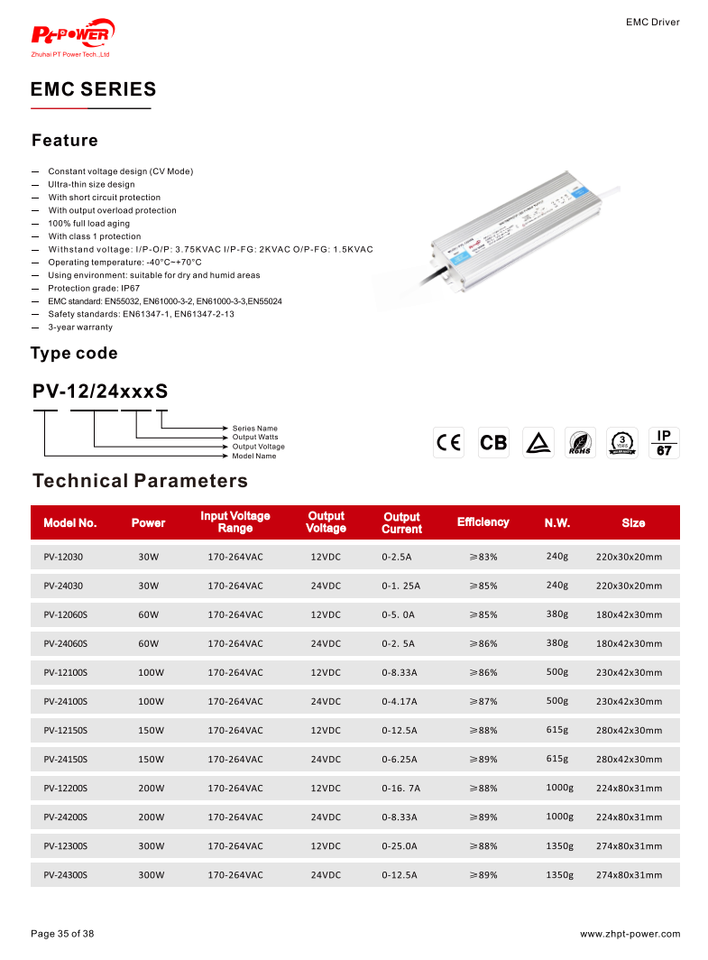 หมายเลขรุ่น:PV-12100S/PV-24100S(EMC version)