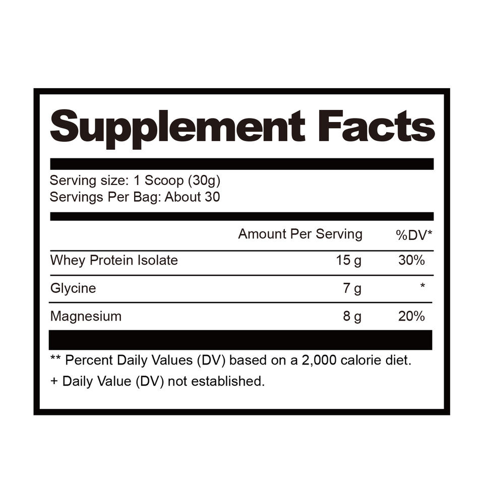 ส่วนผสมหลัก:เวย์โปรตีนไอโซเลต, ไกลซีน, แมกนีเซียม