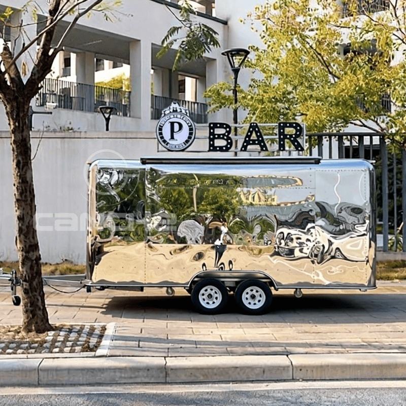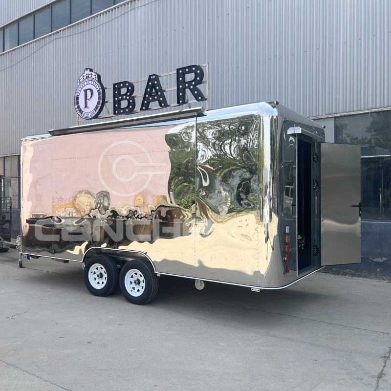 รถพ่วงขายอาหารเคลื่อนที่สแตนเลส พร้อมใบรับรอง CE COC รถขายอาหารมือสอง พร้อมหมายเลข VIN
