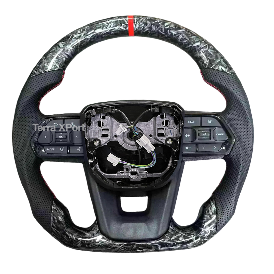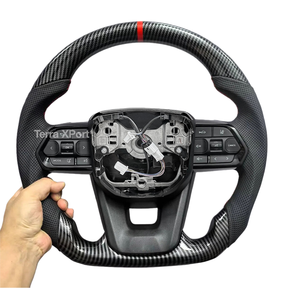 พวงมาลัยรถยนต์สปอร์ตแบบกำหนดเอง CE ทำจากไม้ คาร์บอนไฟเบอร์ และหนัง สำหรับ Rogue Corolla Land Cruiser MK5