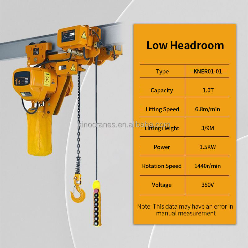 รอกโซ่รางเดี่ยวแบบยกต่ำ ได้รับการรับรองมาตรฐาน CE 380V 1 ตัน 2 ตัน 5 ตัน สำหรับโรงงาน