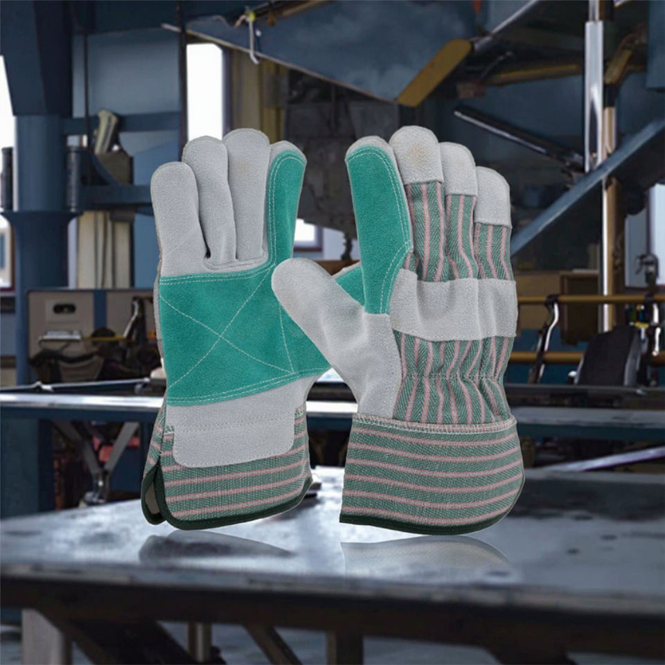ถุงมือป้องกันอุตสาหกรรมงานหนัก ได้รับการรับรองมาตรฐาน CE พร้อมฝ่ามือหนังสองชั้น พิมพ์ลายตามสั่ง ป้องกันอย่างปลอดภัย สวมใส่สบาย