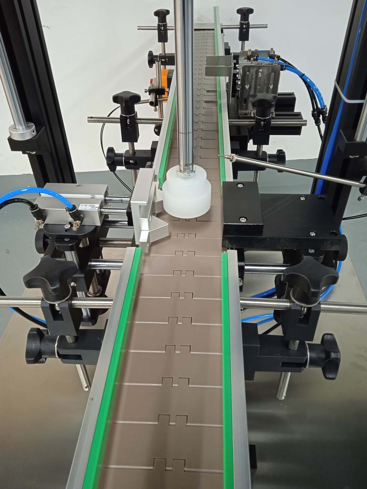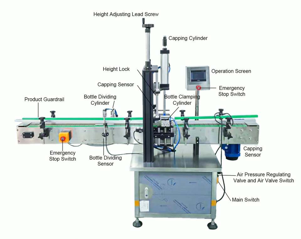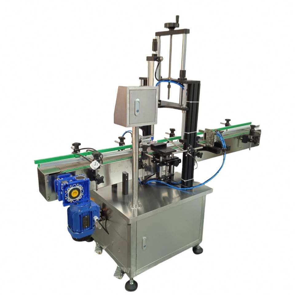 เครื่องปิดฝาขวดแบบลมอัดได้รับการรับรองมาตรฐาน CE สำหรับขวดทรงกลมหัวปั๊มในบรรจุภัณฑ์เครื่องสำอาง