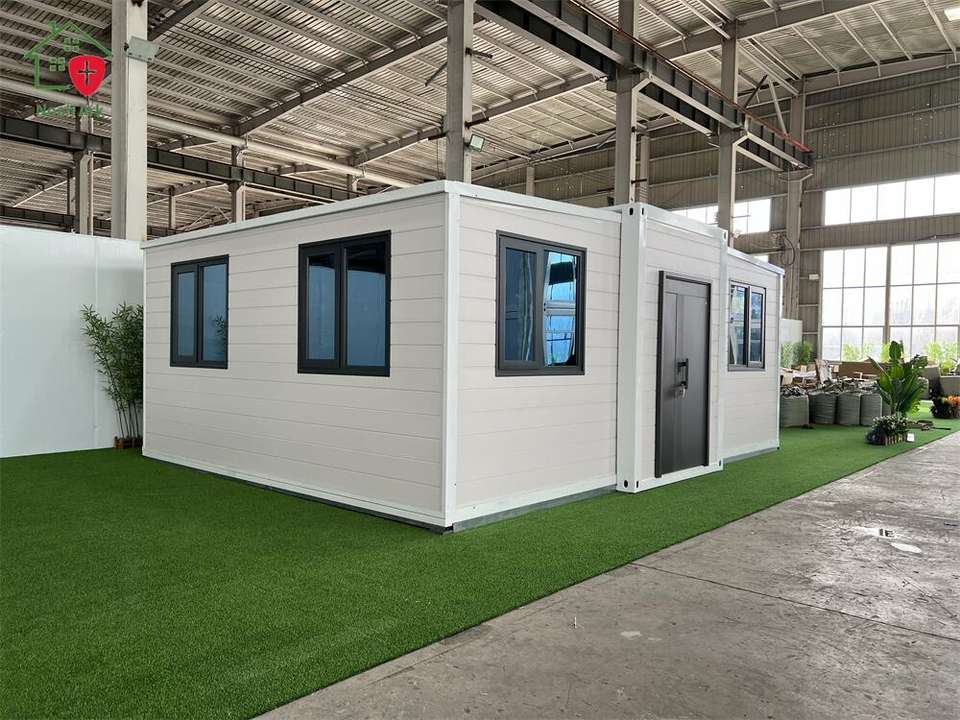 บ้านคอนเทนเนอร์แบบขยายได้สองปีก ใช้พลังงานแสงอาทิตย์ ผลิตจากแผ่นแซนวิชสำเร็จรูป ได้รับการรับรองมาตรฐาน CE สามารถใช้งานแบบออฟกริดได้ ควบคุมระยะไกล
