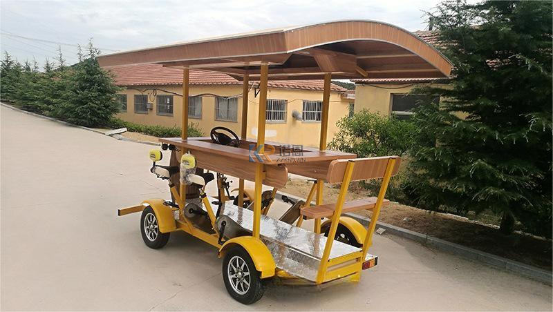 จักรยานจำหน่ายเบียร์เชิงพาณิชย์สแตนเลสสตีลสีตามสั่ง ได้รับการรับรองมาตรฐาน CE พร้อมบาร์เครื่องดื่มเย็นและอาหาร